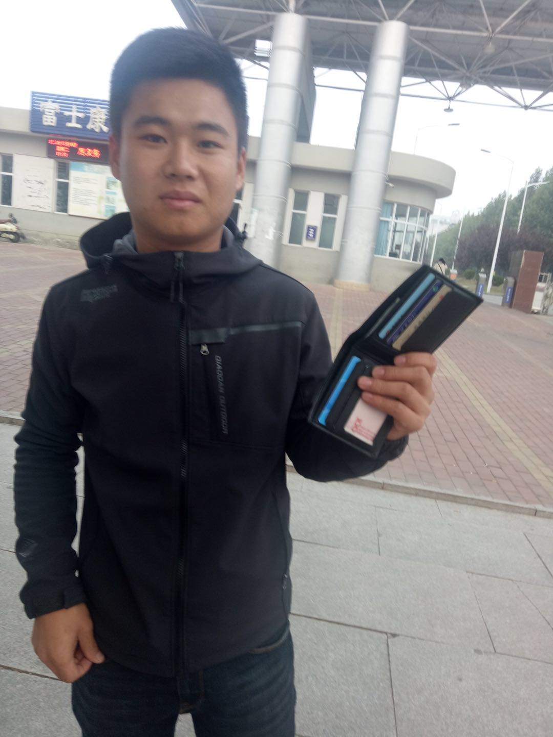 2018年10月16日,我公司員工賈聯(lián)化在富士康清潔時(shí)發(fā)現(xiàn)一個(gè)男士錢(qián)包,里面有加油卡、銀行卡以及一些現(xiàn)金,賈師傅連忙通知了部門(mén)主管,請(qǐng)她幫忙聯(lián)系失主。