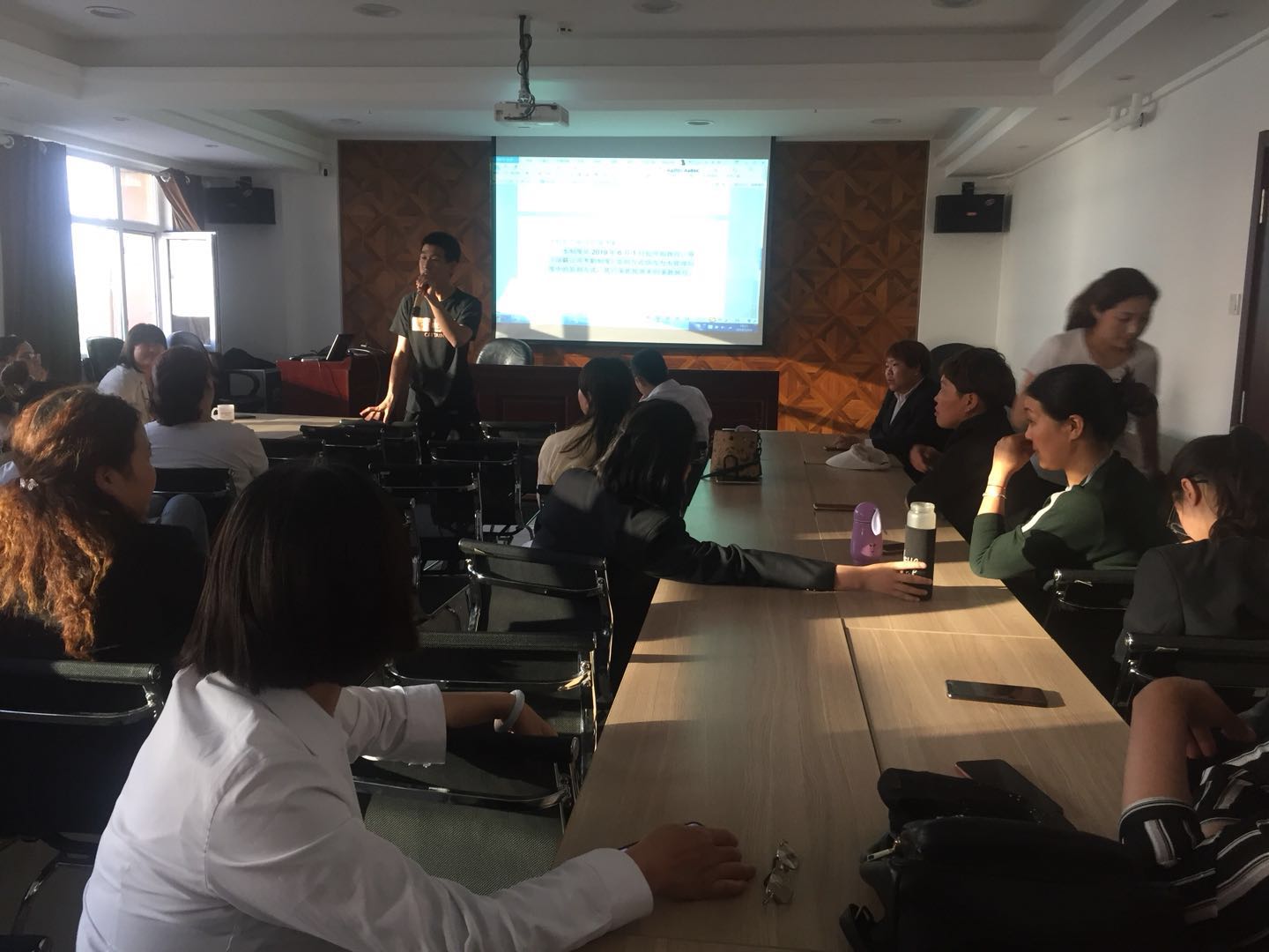培訓開始時,主持人用簡潔的語言為大家介紹了“釘釘軟件考勤管理制度”包括使用原則考勤要求、考勤方式。