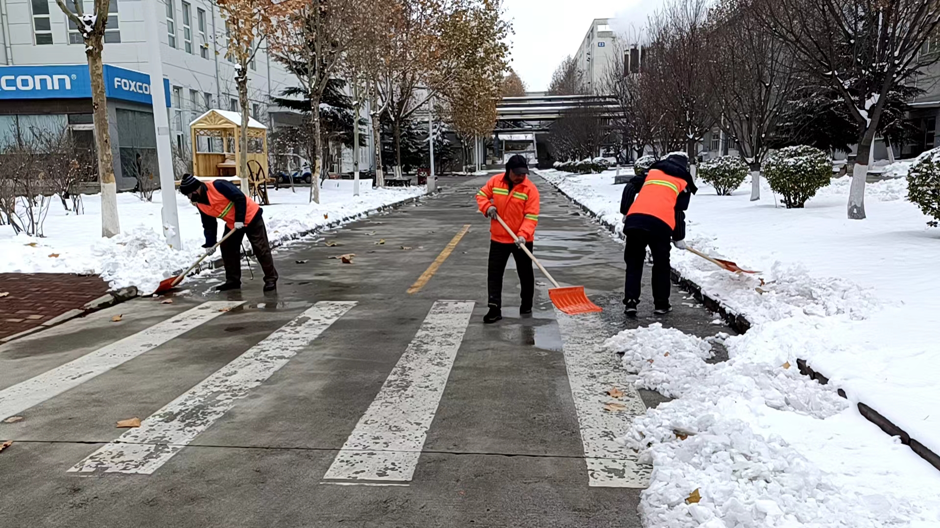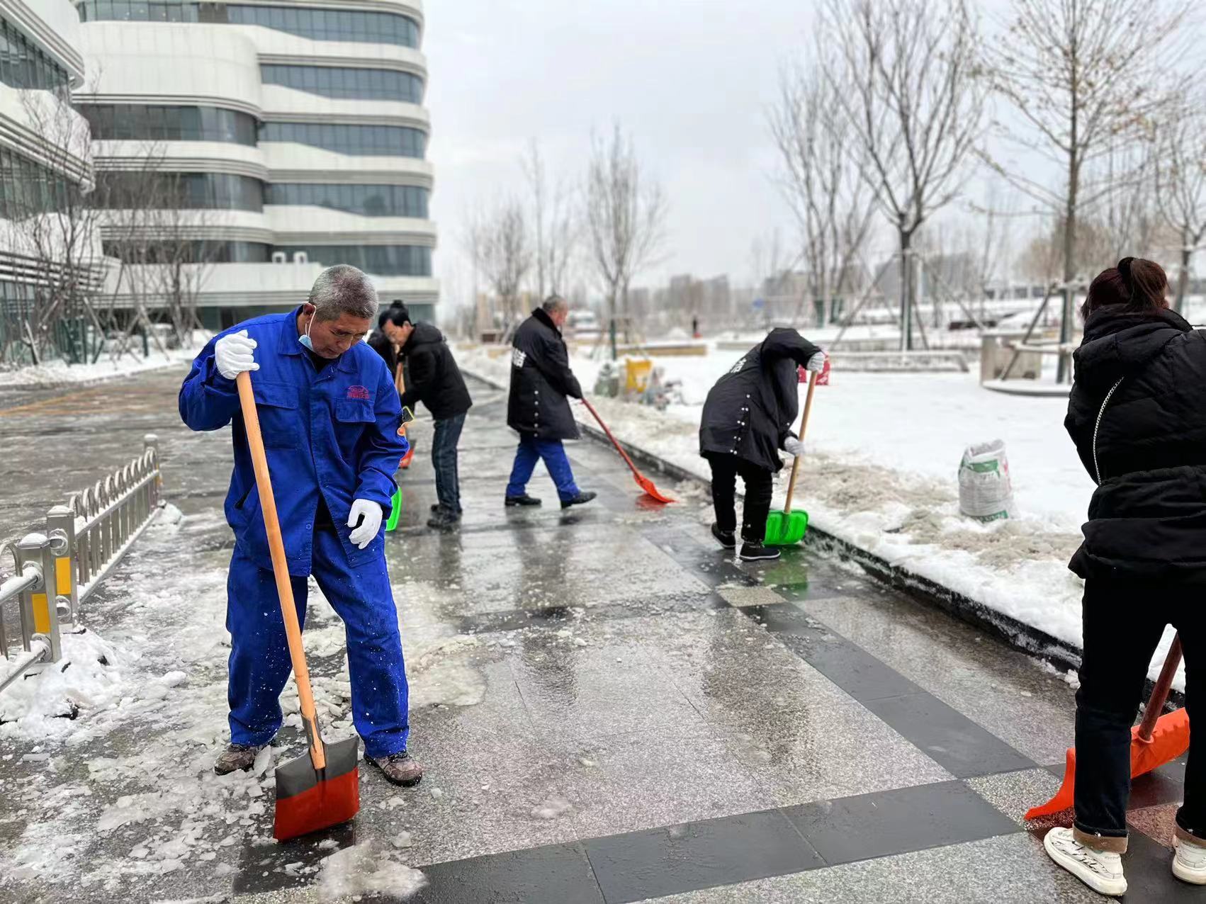 為保障群眾的安全以及道路的通暢,為廣大市民提供一個(gè)安全、便捷的出行環(huán)境,11日一大早,公司各個(gè)項(xiàng)目部、單位服務(wù)點(diǎn)的員工以雪為令,聞雪而動(dòng)積極行動(dòng)起來,投身到清掃積雪的活動(dòng)中。下雪后的天氣雖然寒冷,但也無法阻擋大家掃雪的熱情,同志們個(gè)個(gè)干勁滿滿——有的用除雪鏟推,有的拿鐵鍬鏟,有的拿笤帚掃……大家分工明確,配合默契,各個(gè)掃雪現(xiàn)場都是熱火朝天,為群眾安全出行開辟出了一條“暖心路”。充分彰顯了潔霸服務(wù),展示了潔霸形象。