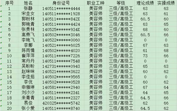 晉城市潔霸清潔服務股份有限公司職業(yè)技能等級認定中心2024年10月13日第12批美容師高級認定人員成績公示